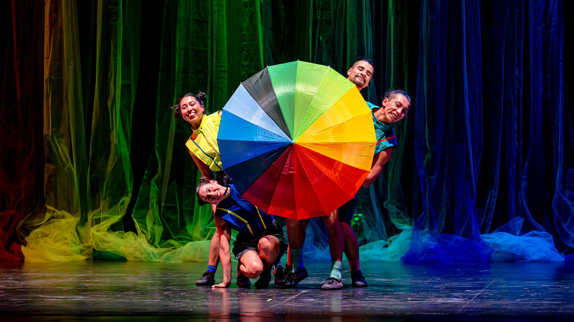 A través del viento, la lluvia y la calma posterior, la obra construye una experiencia lúdica y sensorial donde el público es parte activa, generando una vivencia compartida entre artistas y espectadores.